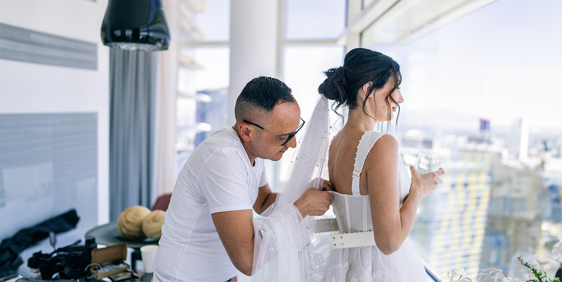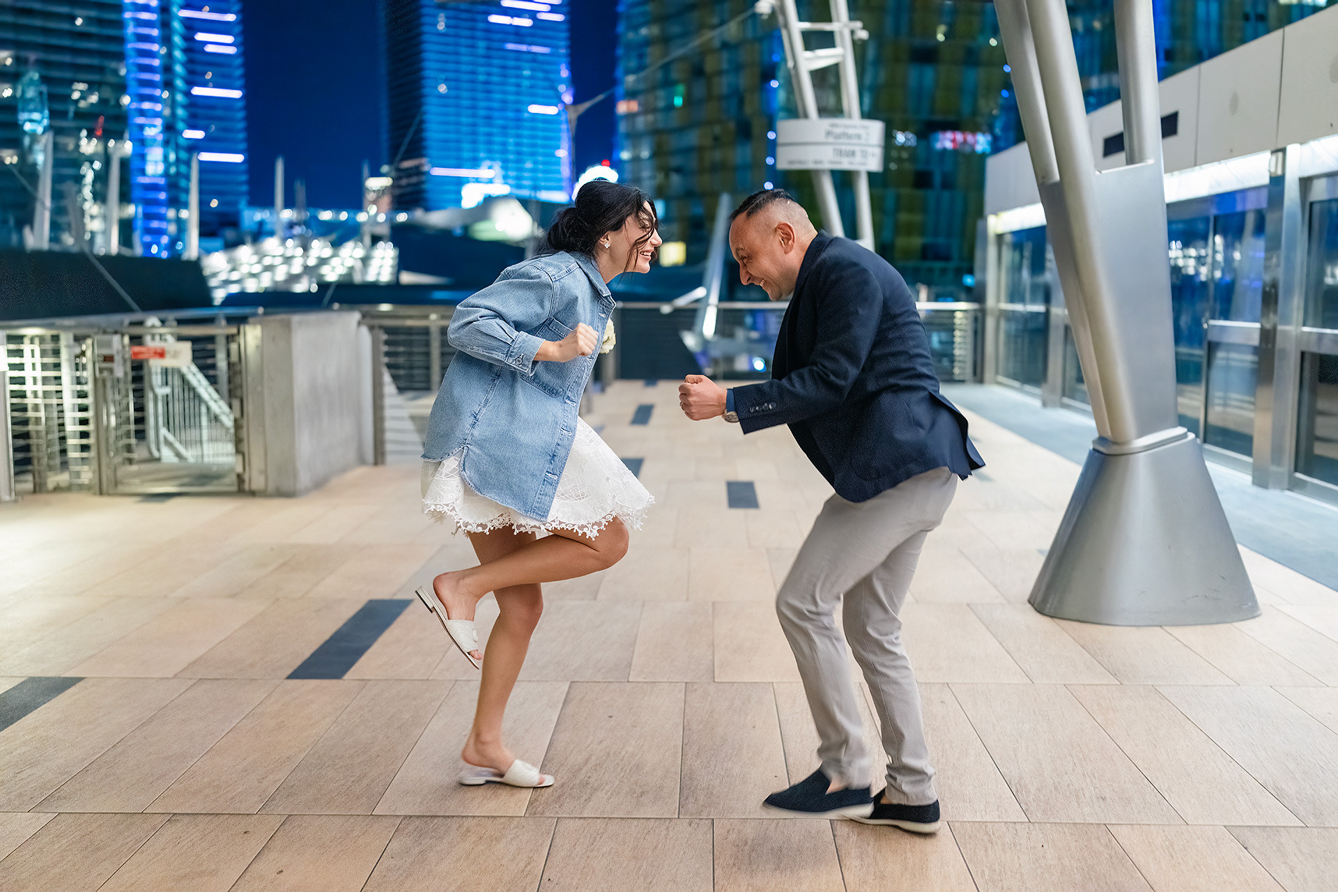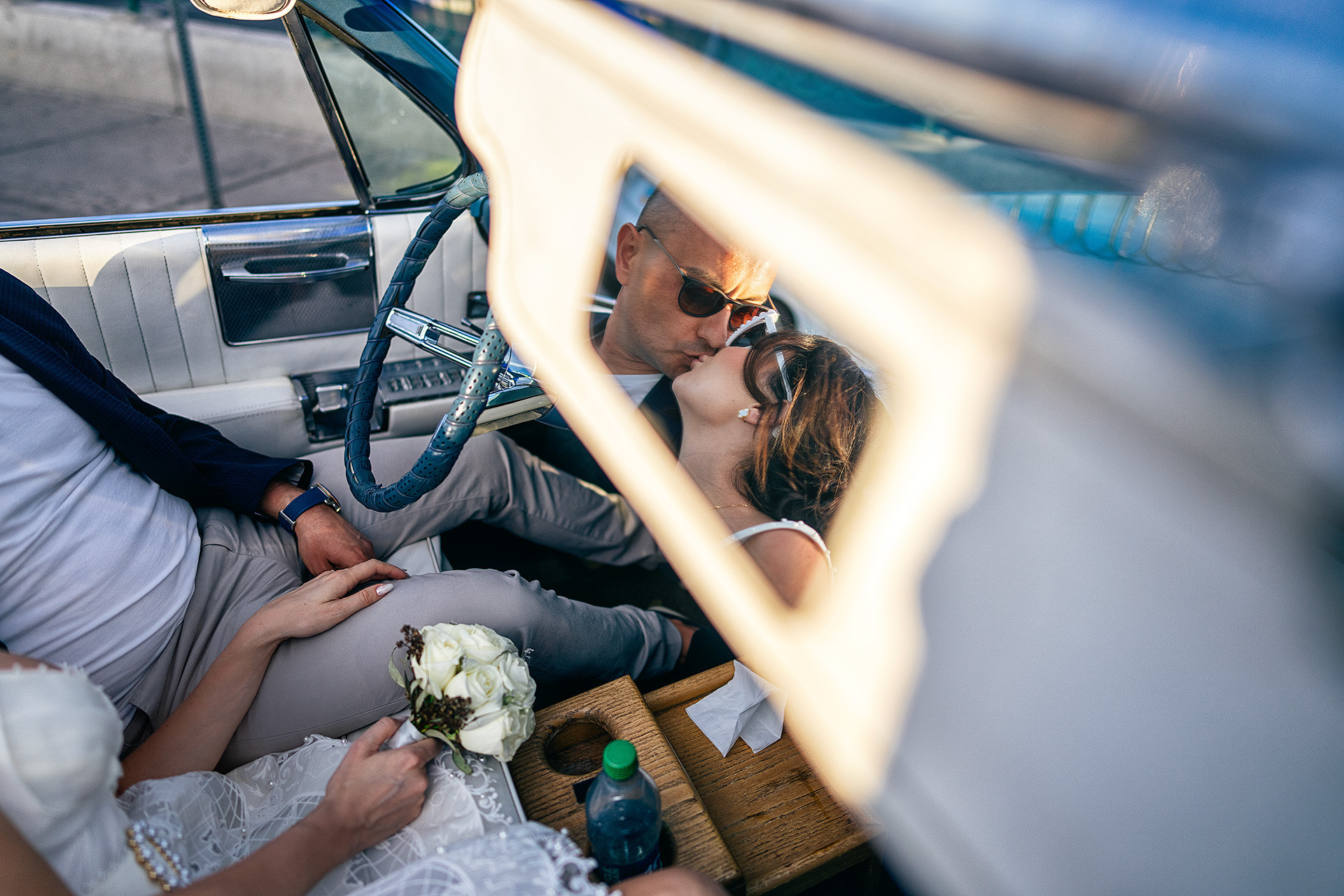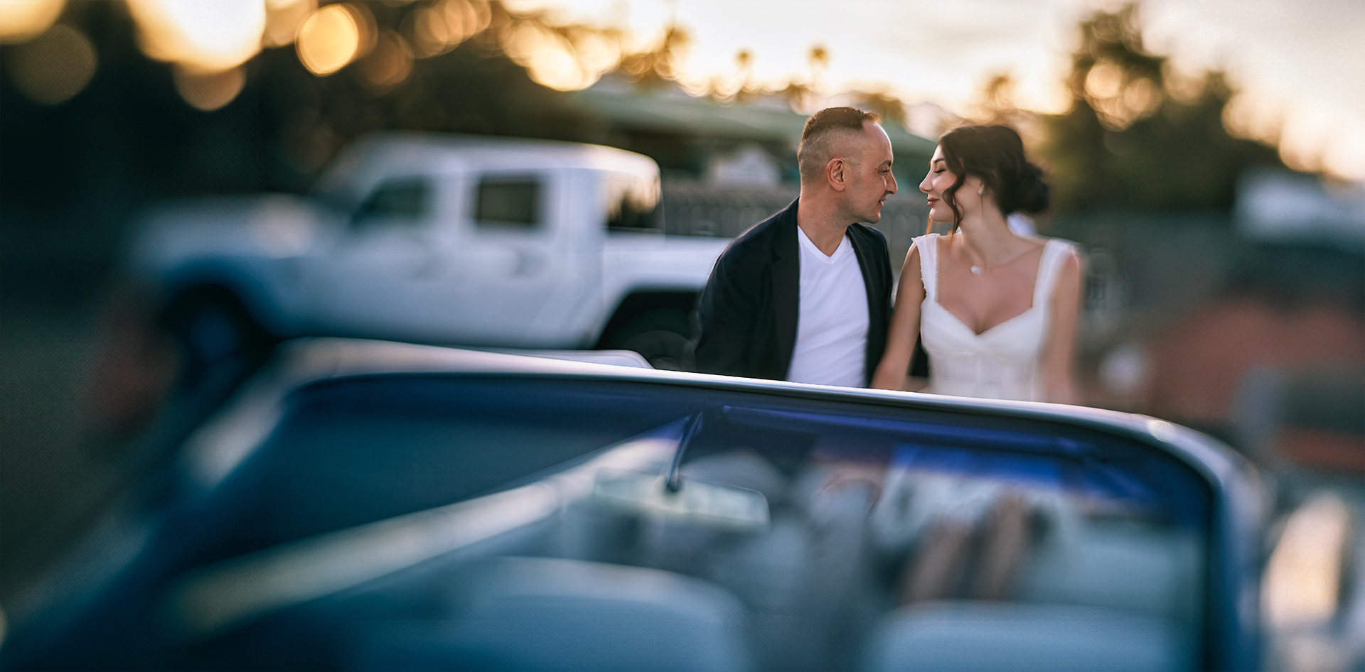 A drive-thru ceremony in a vintage convertible and a tiny chapel with two Elvis impersonators — pure joyful madness that perfectly reflected who they are.