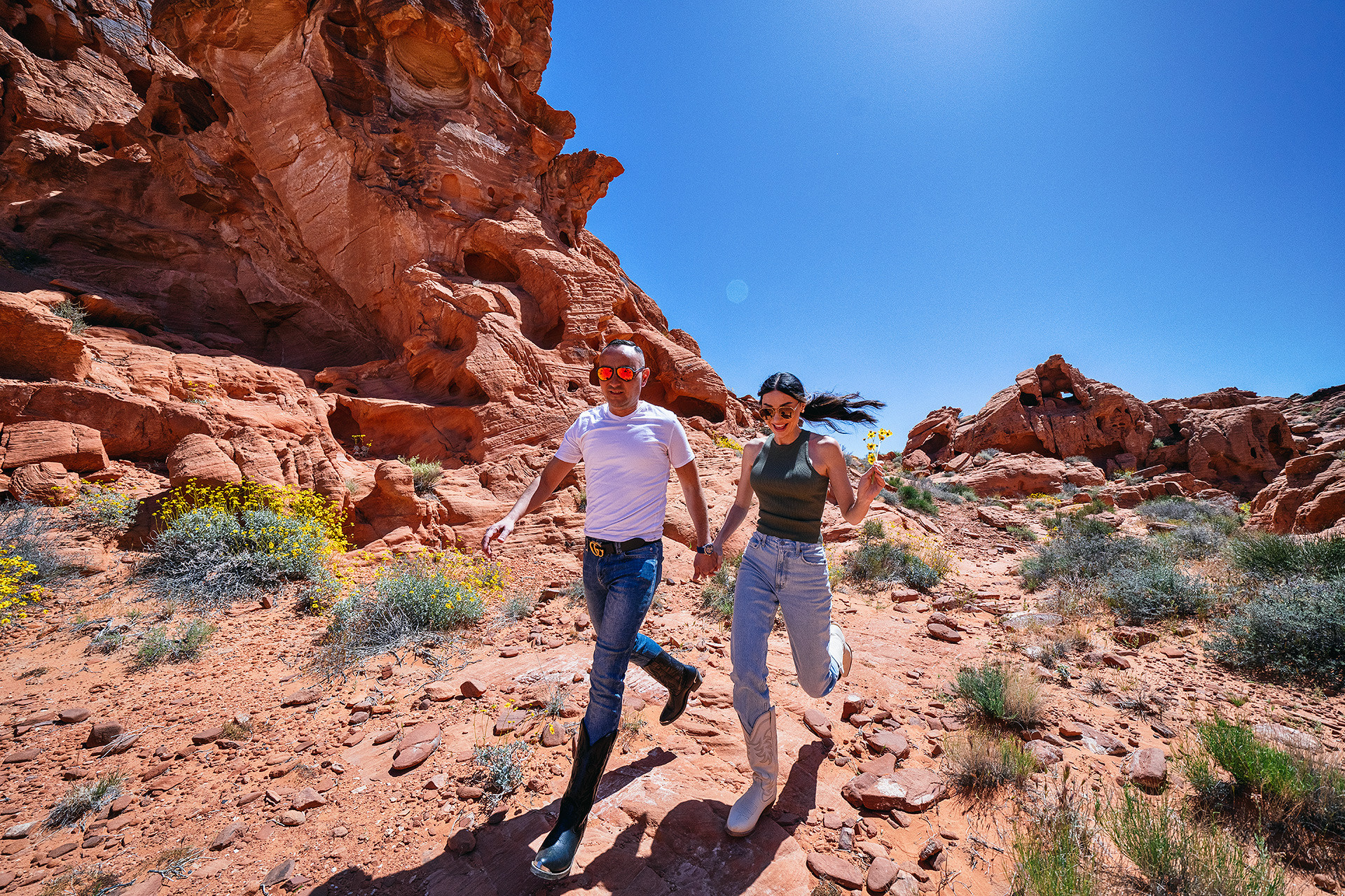 Aziz & Katya spent two unforgettable days driving through Arizona and Nevada, exploring incredible canyons before arriving in Las Vegas for a wedding unlike any other.