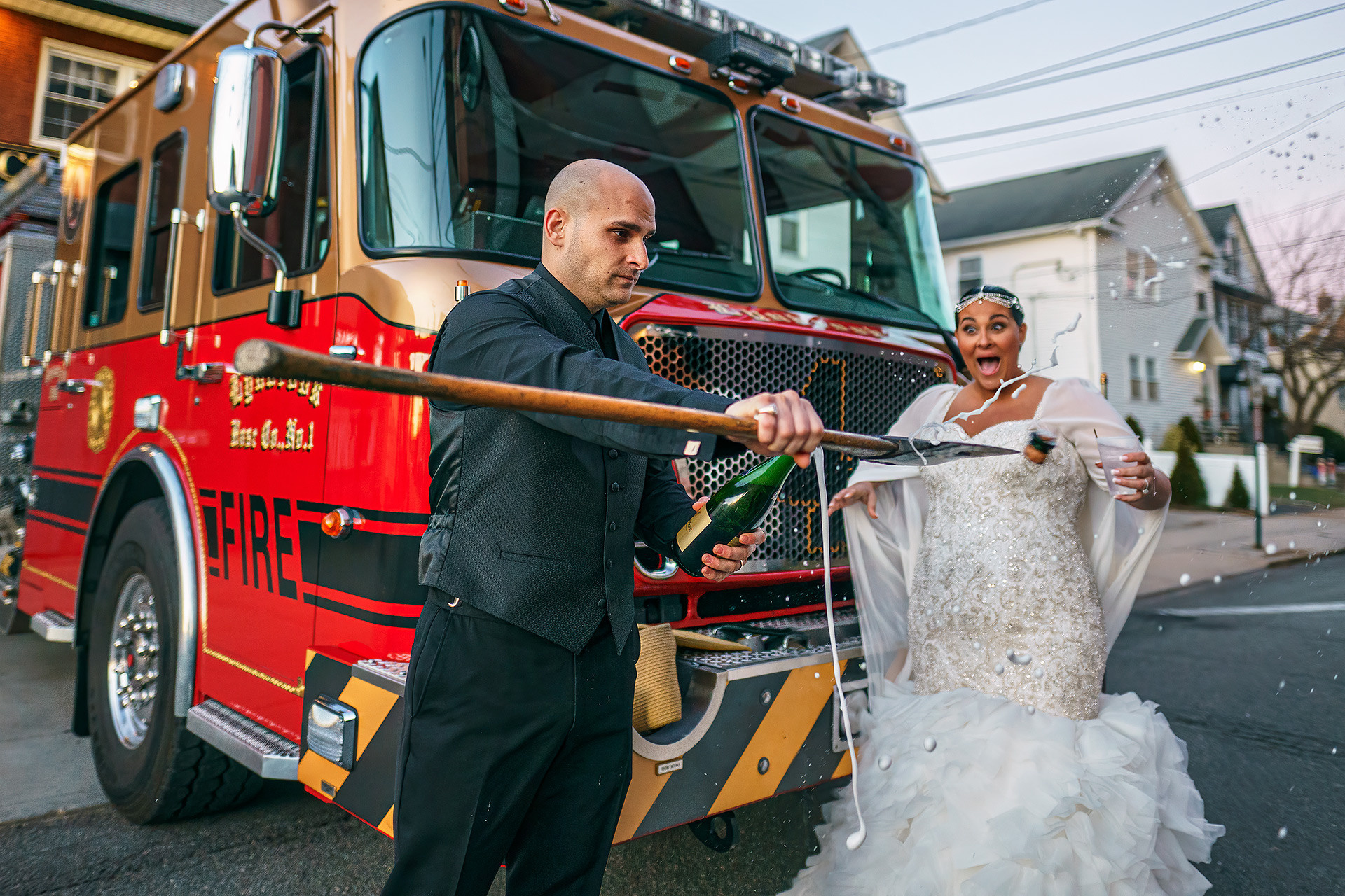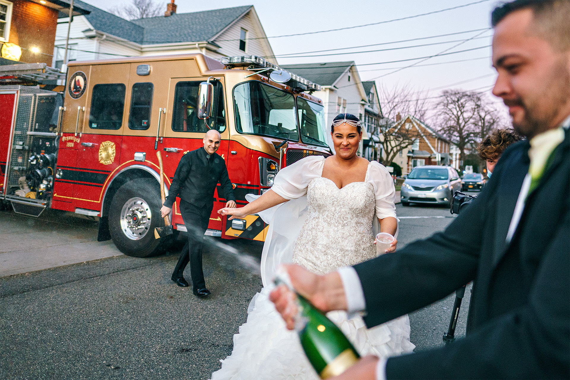 The day continued at the firehouse, where champagne, laughter, and the spirit of the city turned the celebration into something unforgettable — a wedding full of warmth, joy, and true New York character.