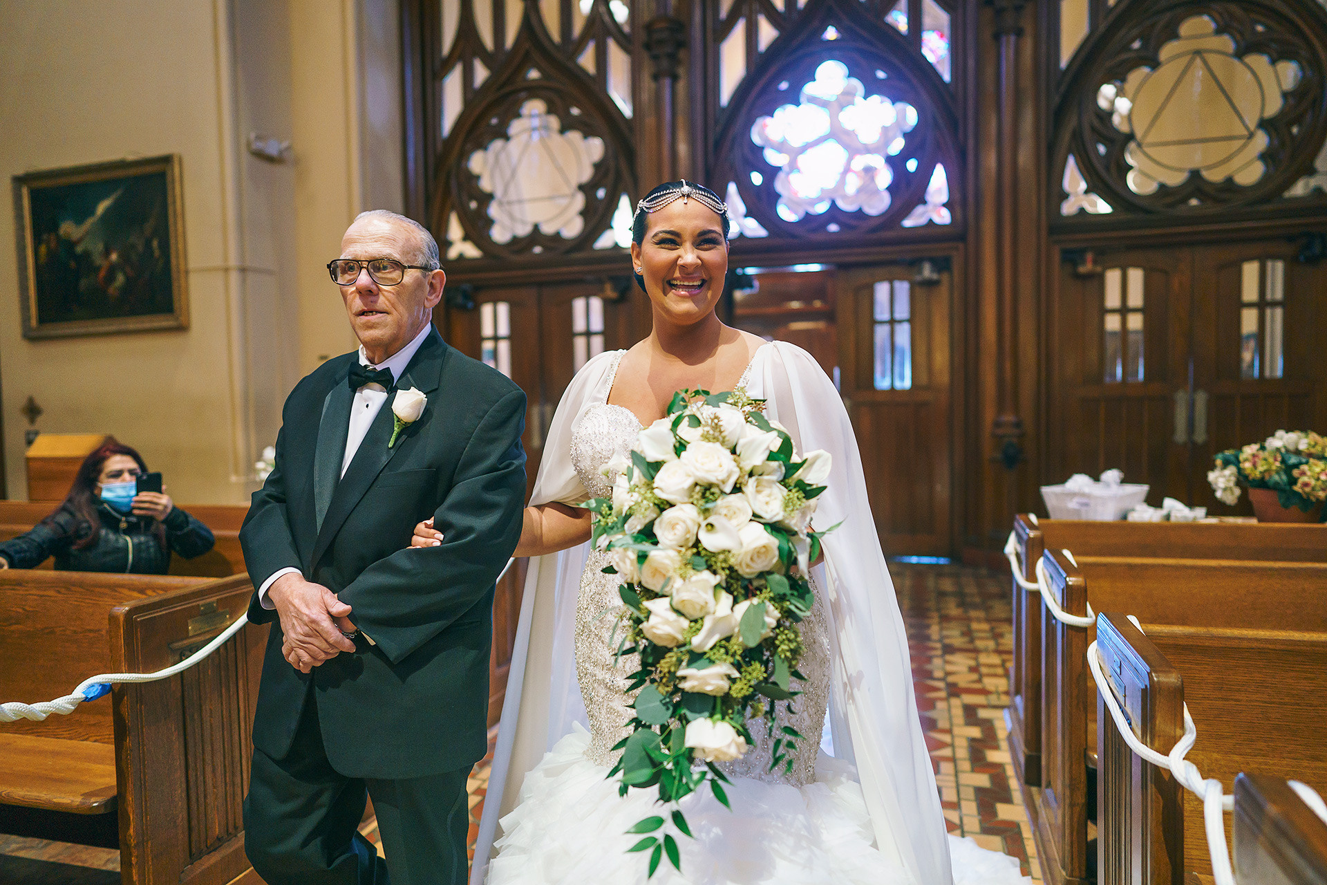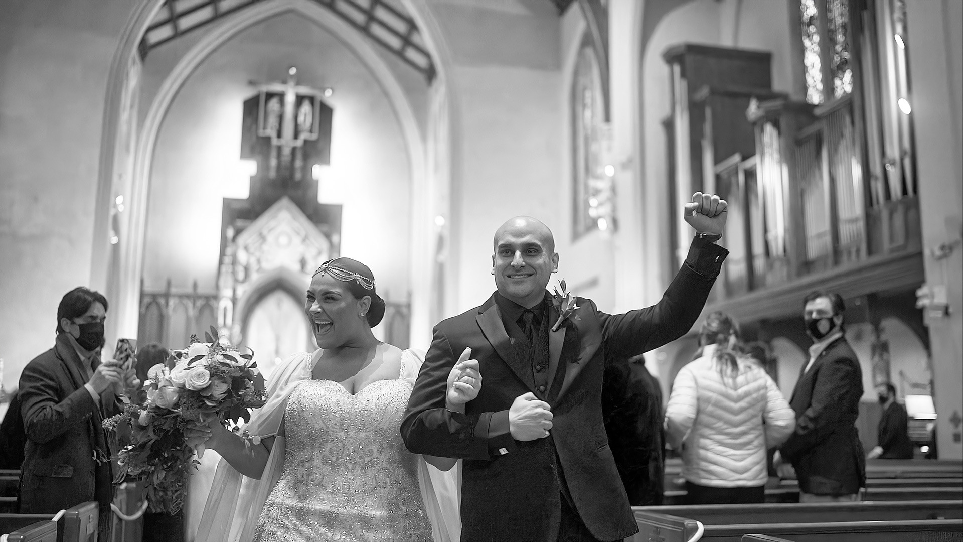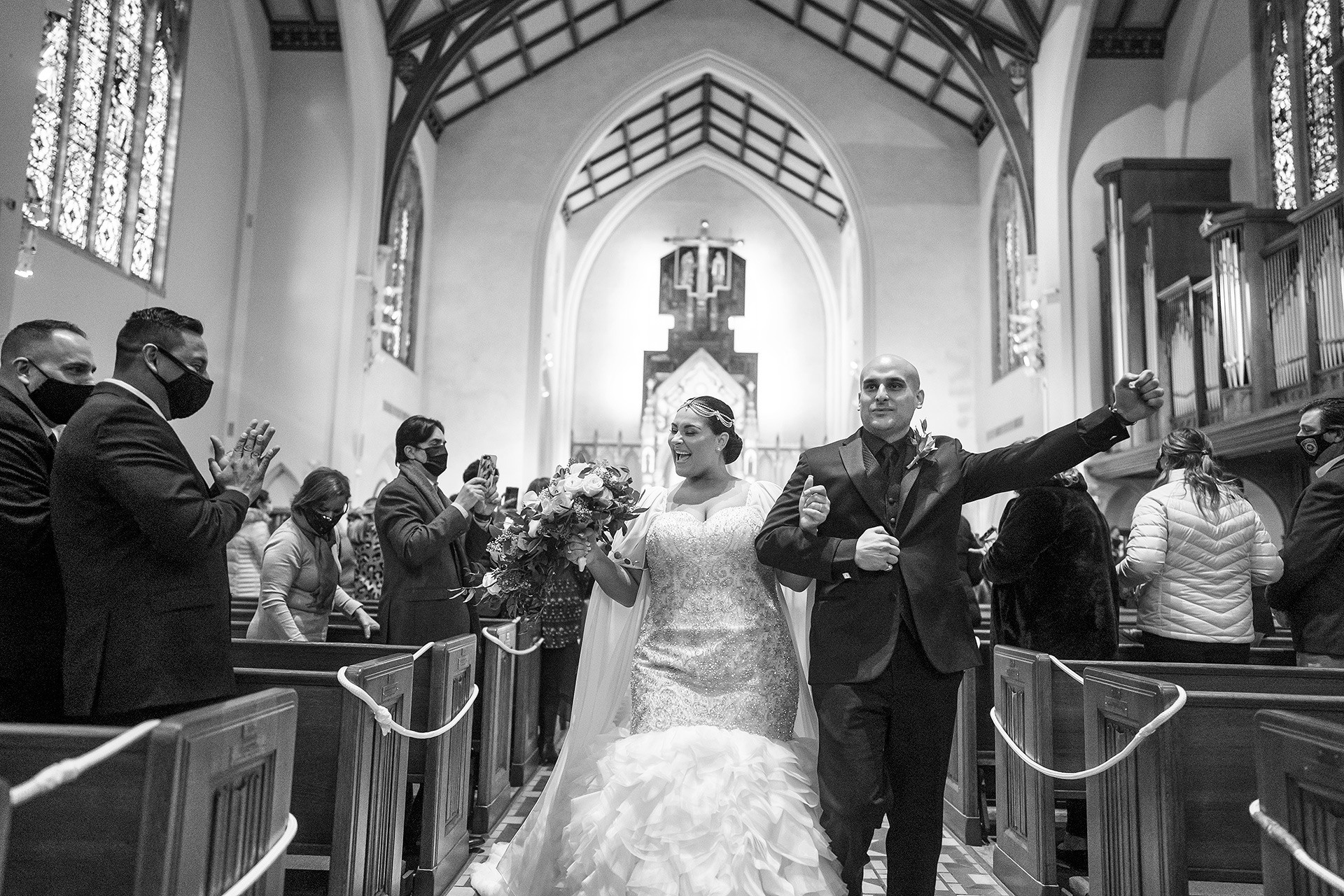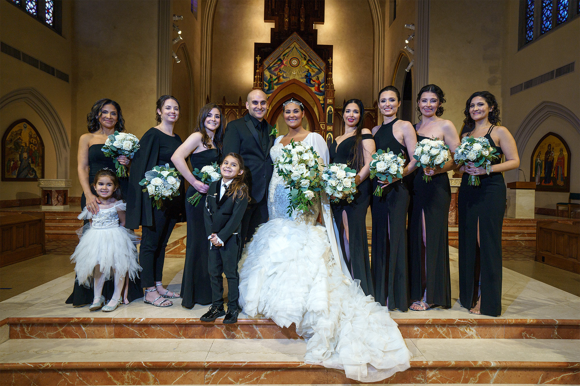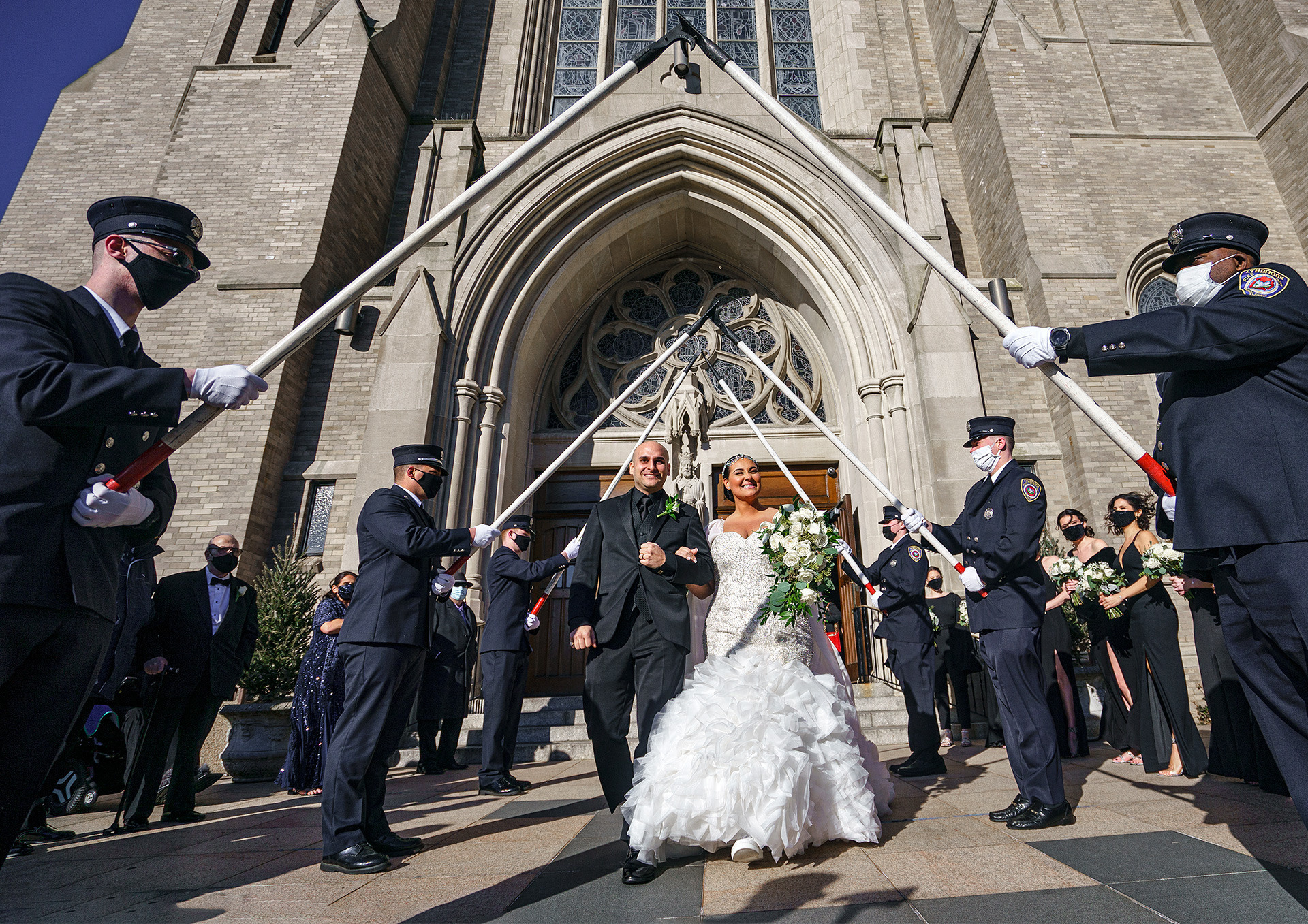 Kristen & Anthony were married on a winter day at the stunning St. Agnes Roman Catholic Cathedral in New York. As they stepped out of the church, Anthony’s fellow firefighters welcomed them with a ceremonial arch of axes — a powerful moment of pride, tradition, and celebration.