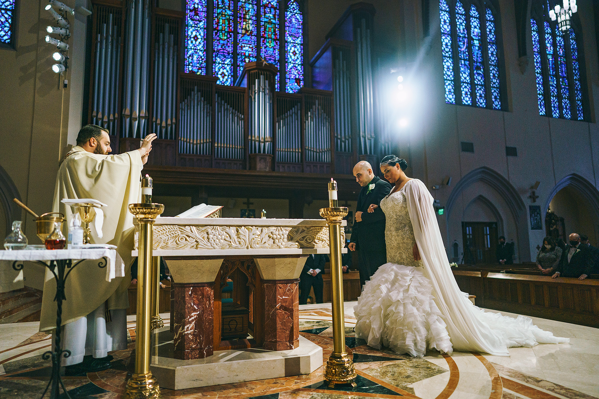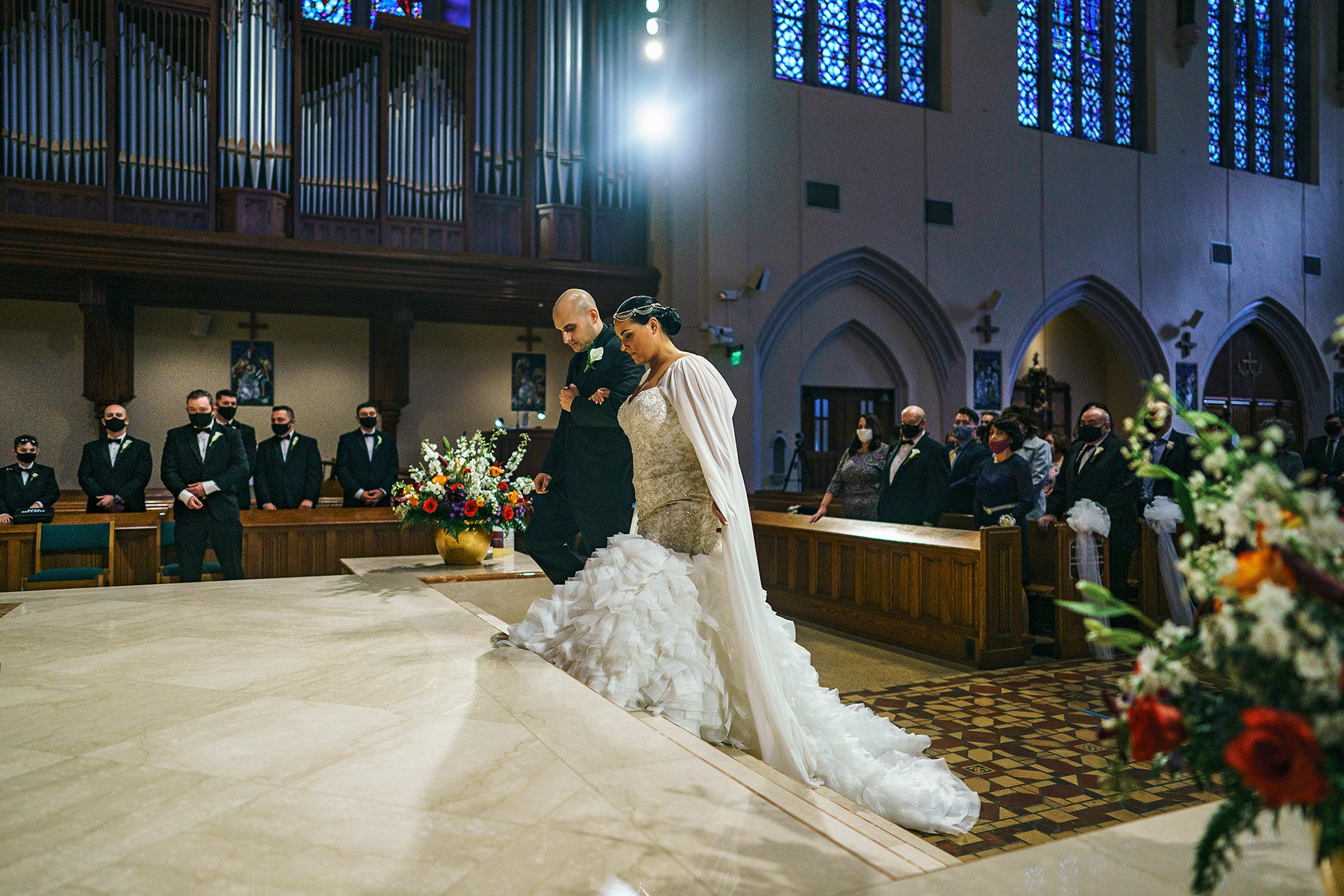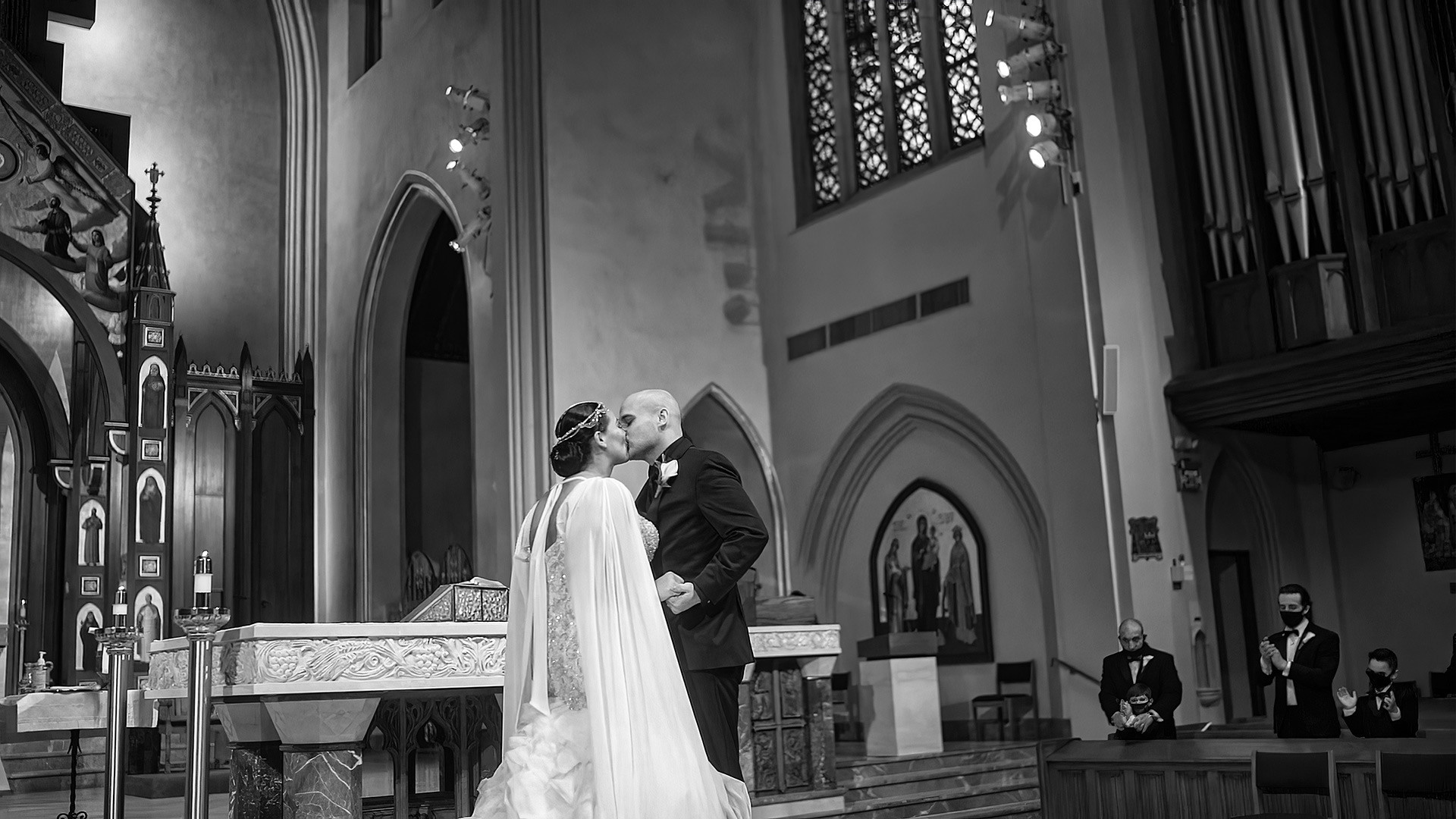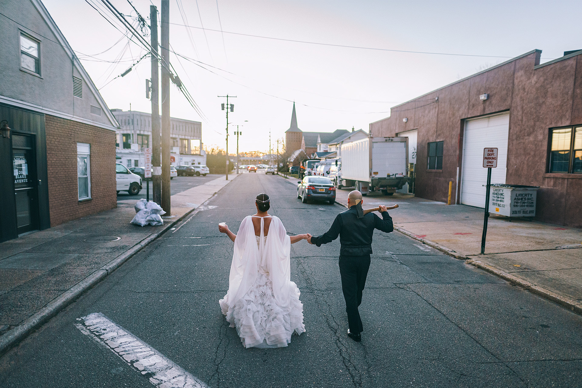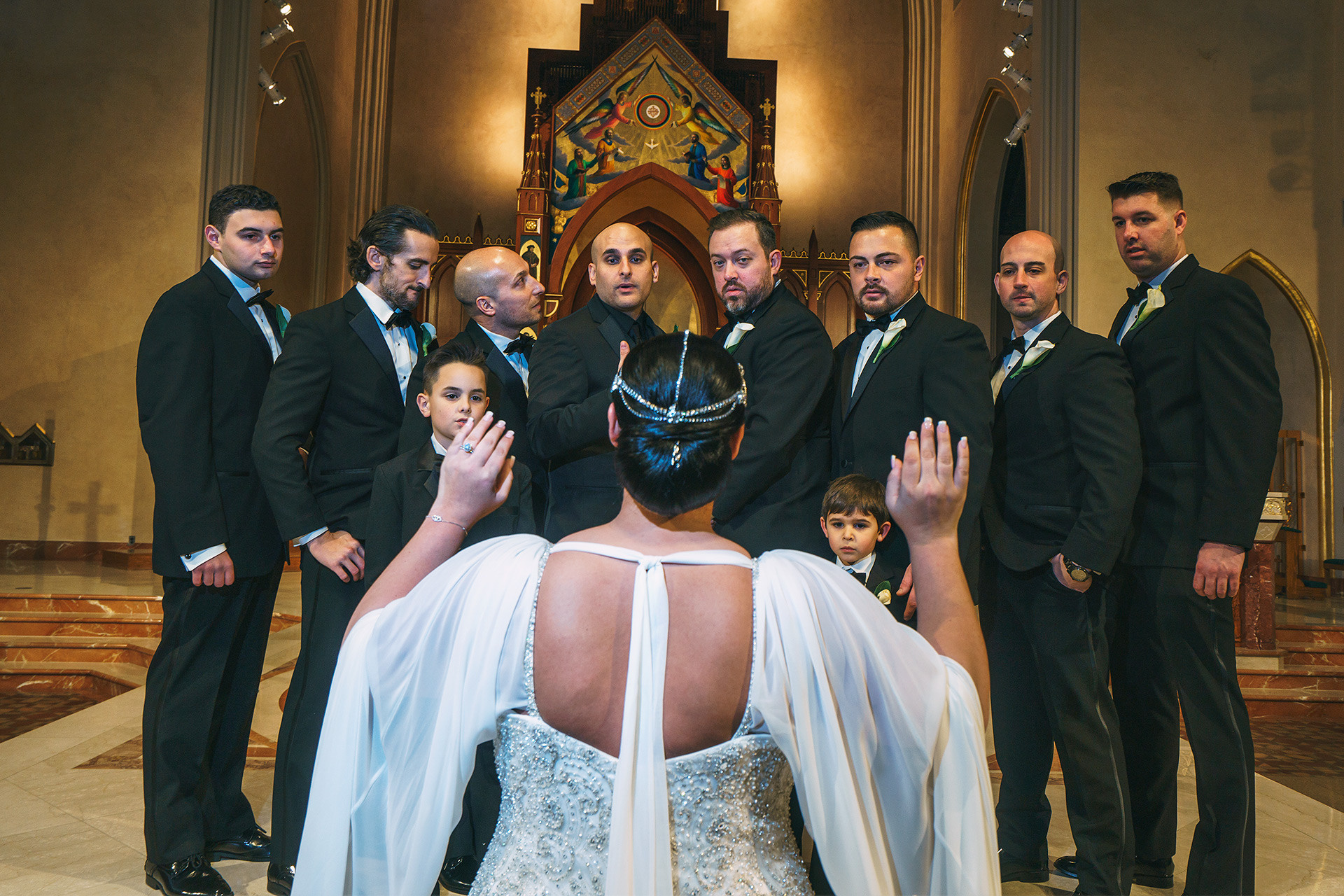 Kristen & Anthony were married on a winter day at the stunning St. Agnes Roman Catholic Cathedral in New York. As they stepped out of the church, Anthony’s fellow firefighters welcomed them with a ceremonial arch of axes — a powerful moment of pride, tradition, and celebration.