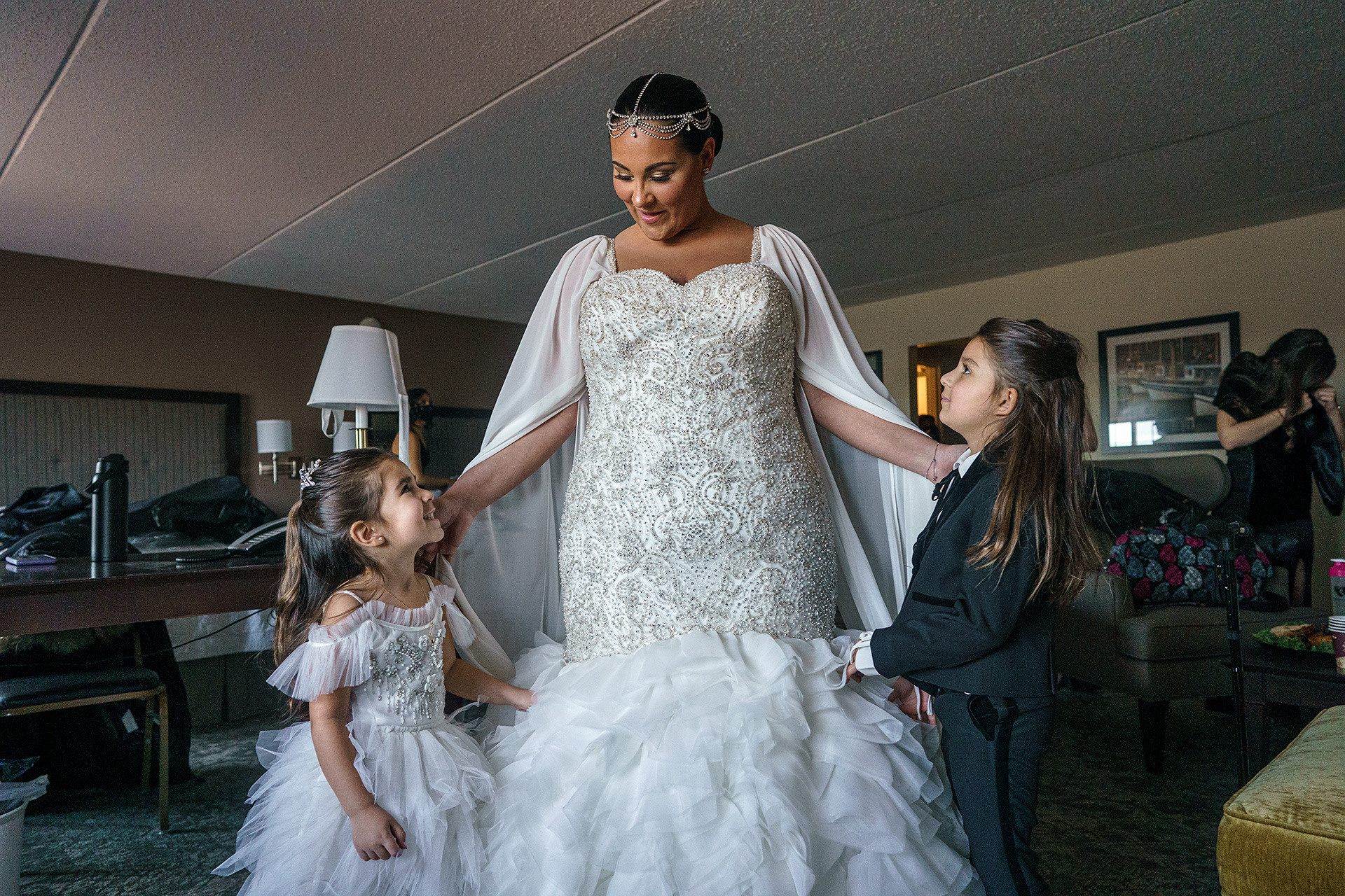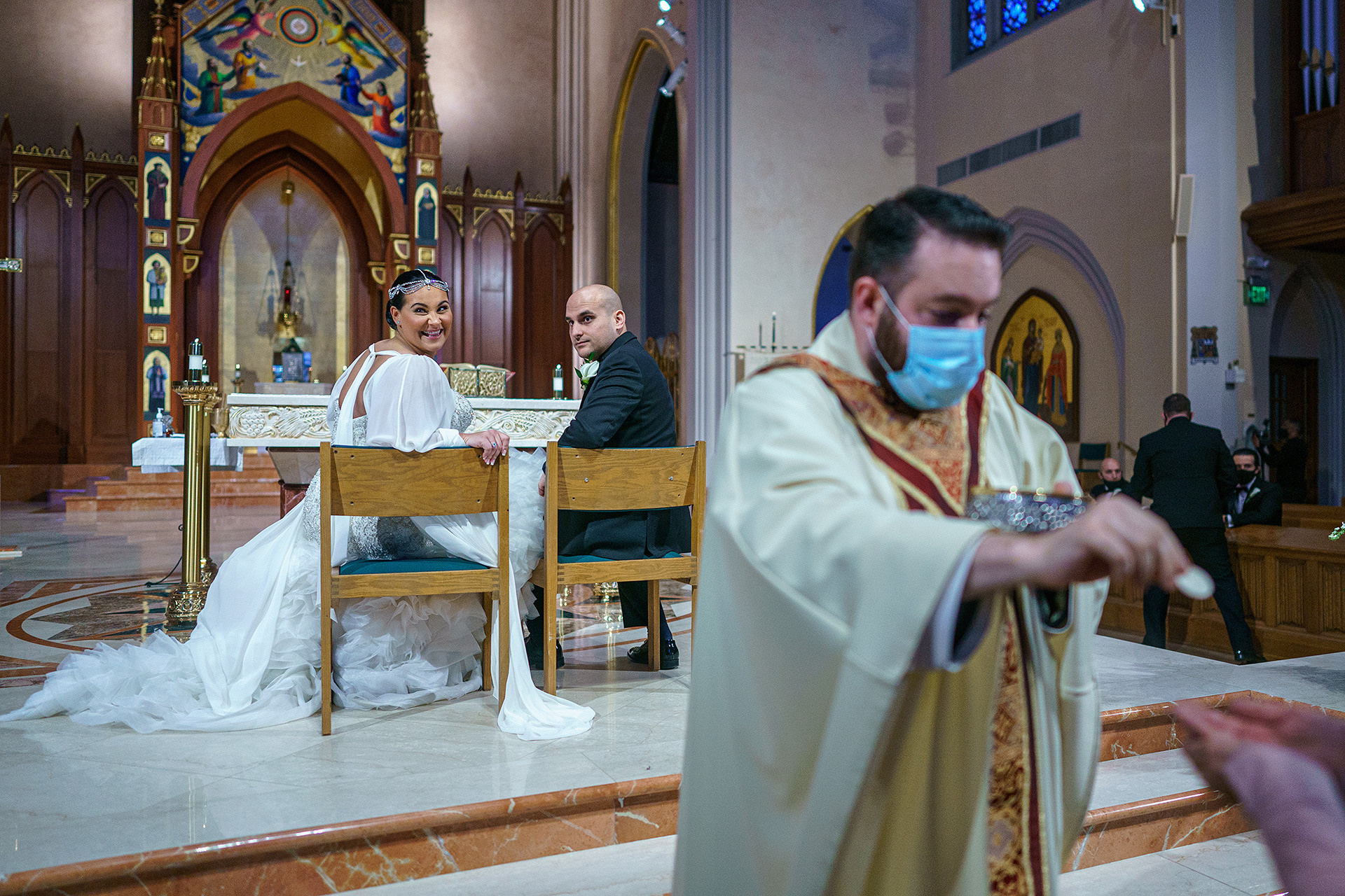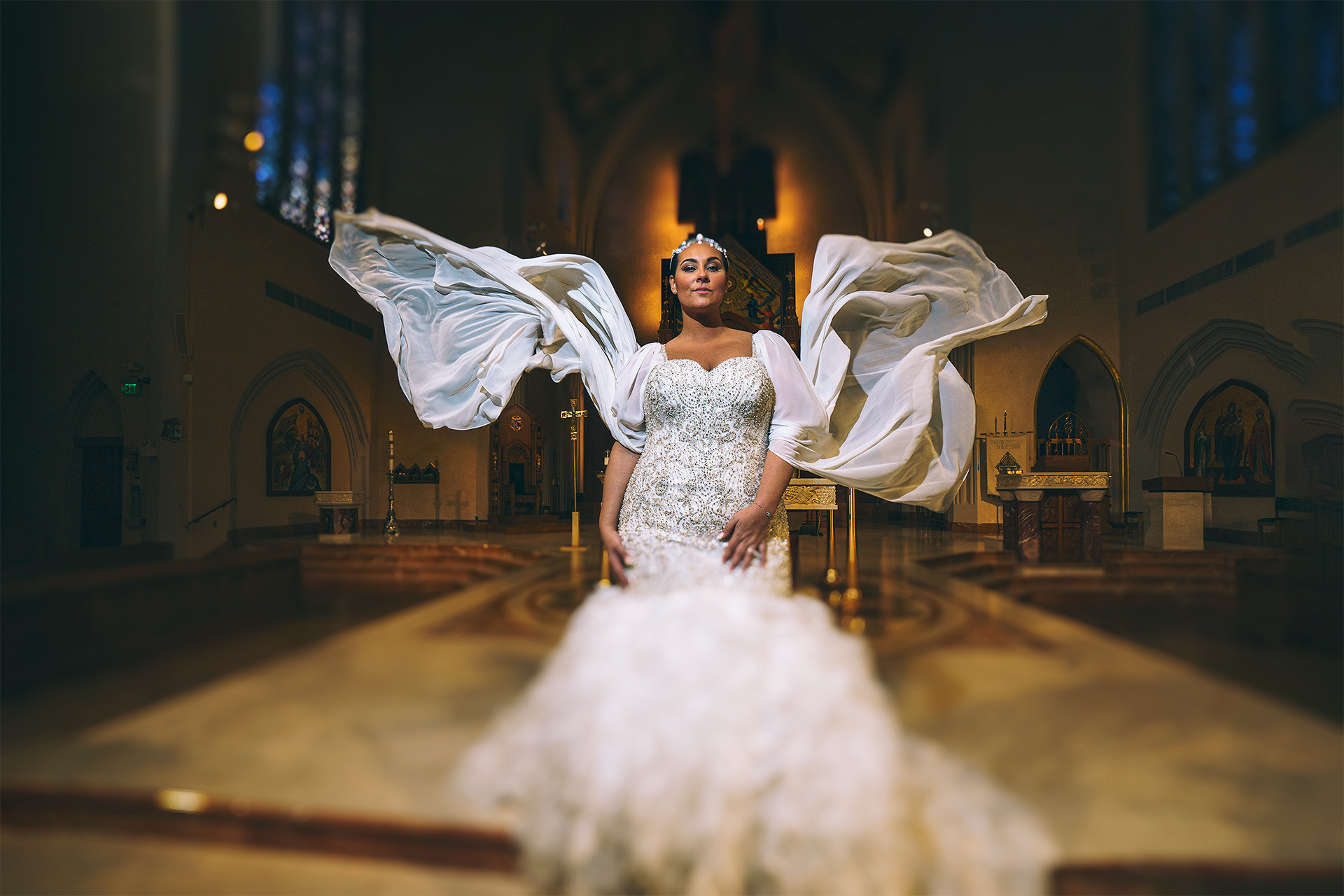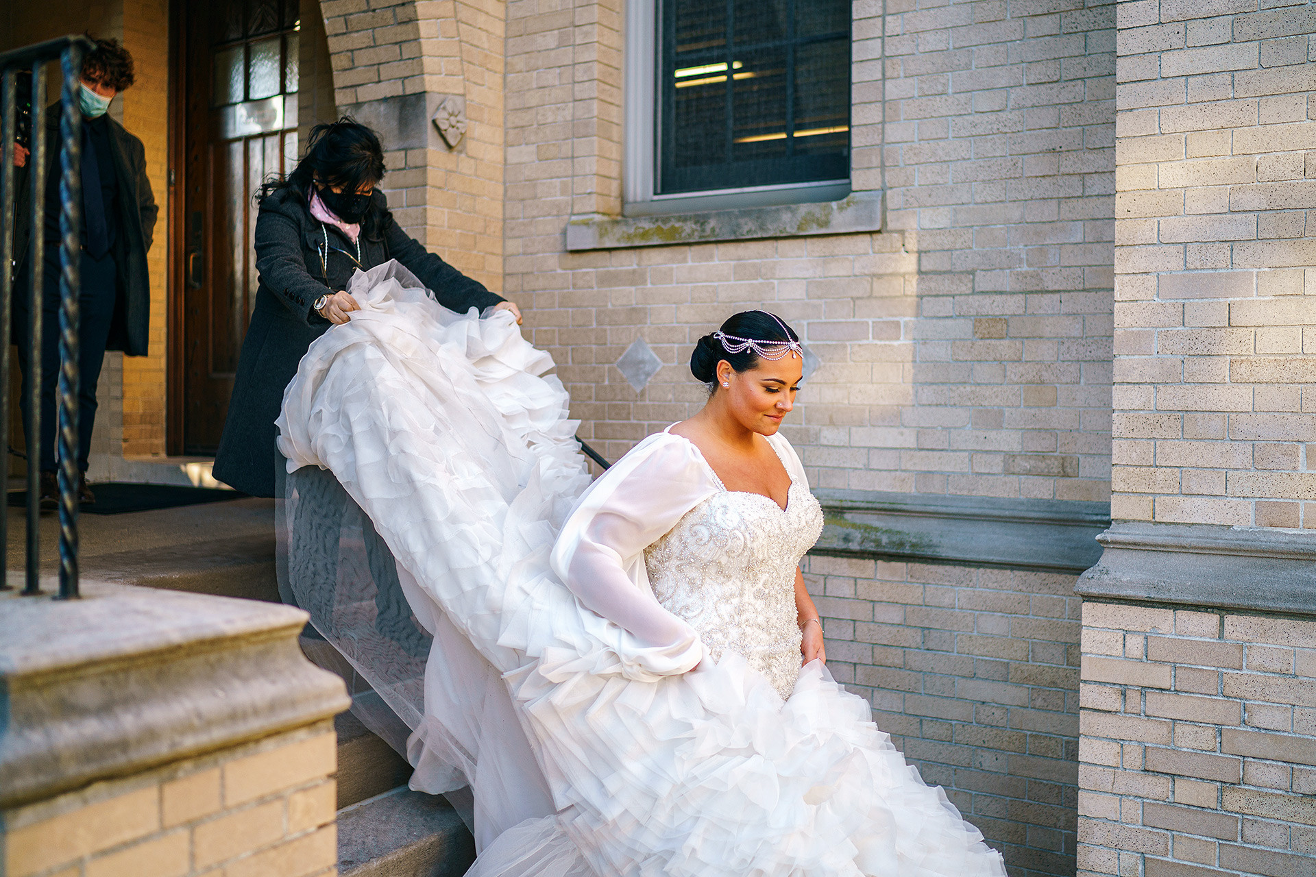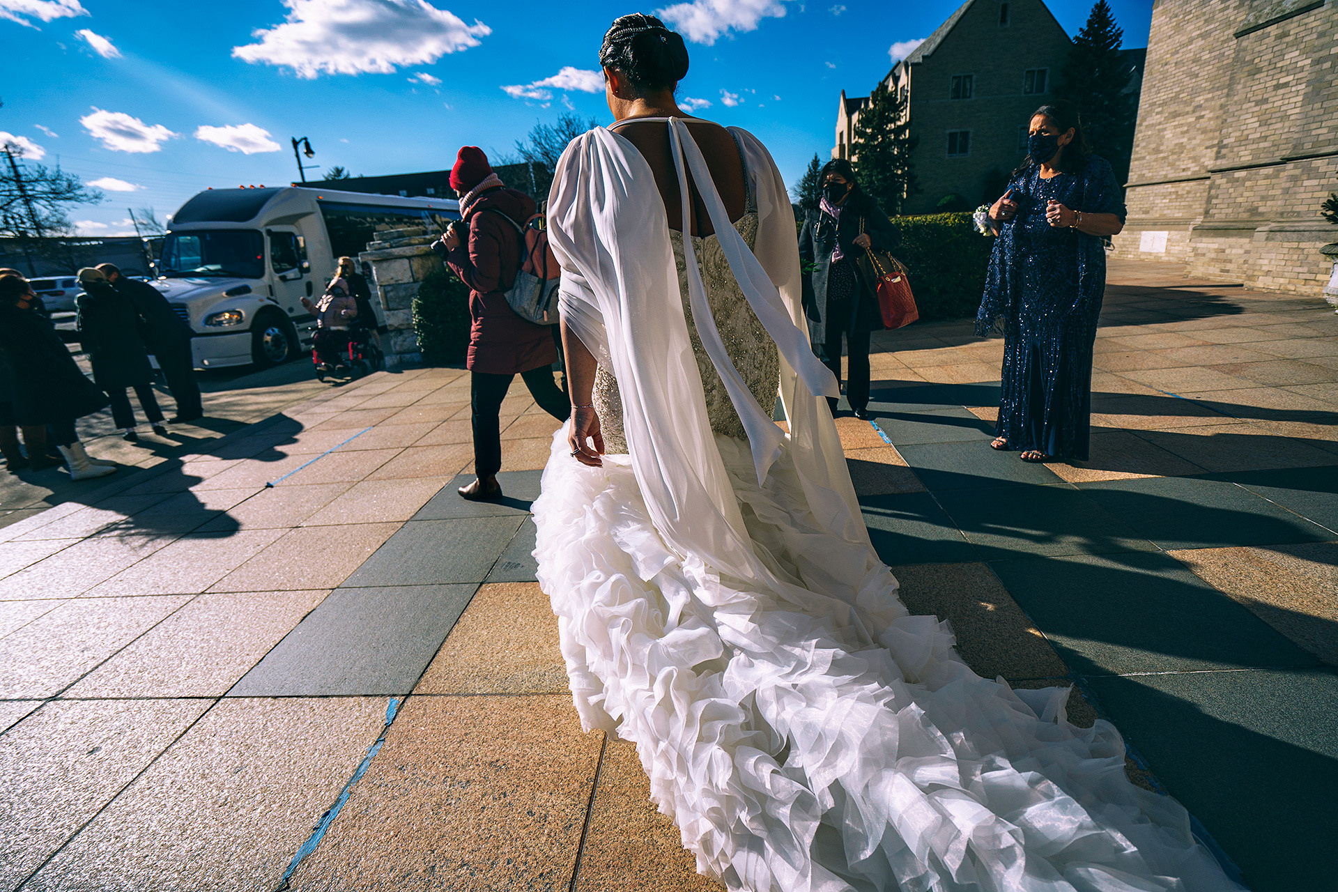 Kristen & Anthony were married on a winter day at the stunning St. Agnes Roman Catholic Cathedral in New York. As they stepped out of the church, Anthony’s fellow firefighters welcomed them with a ceremonial arch of axes — a powerful moment of pride, tradition, and celebration.